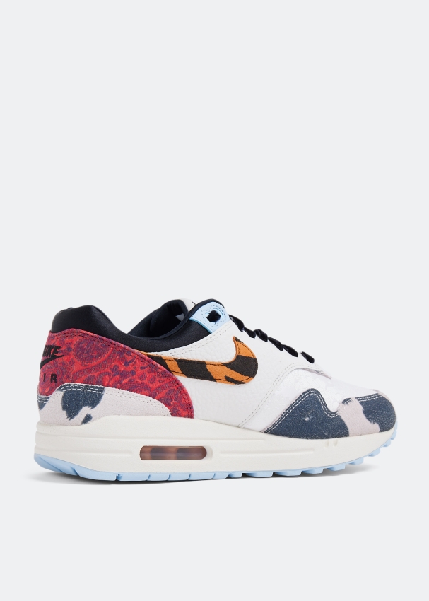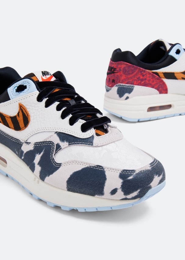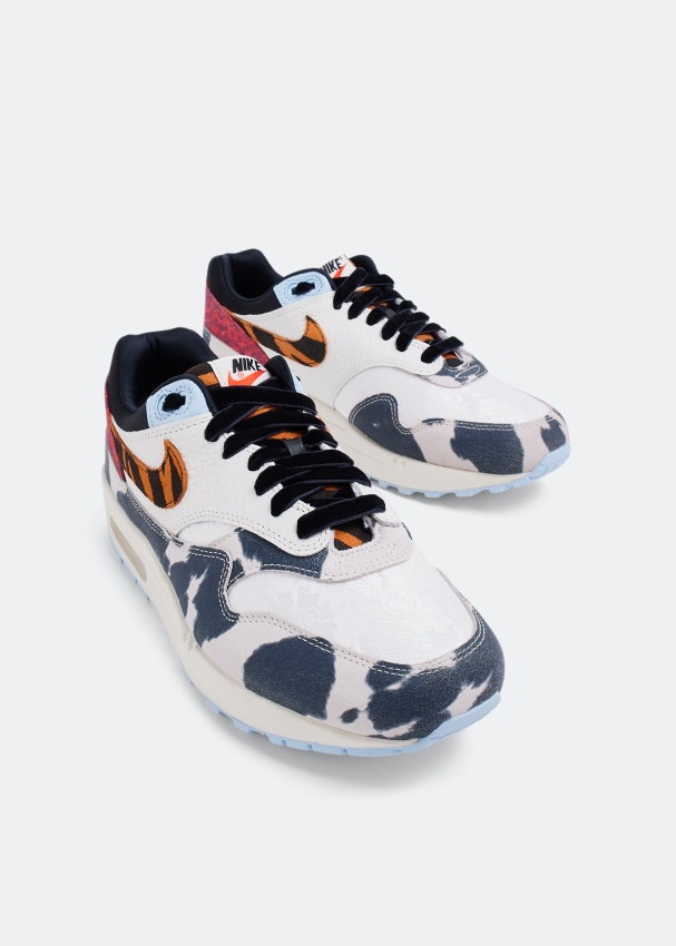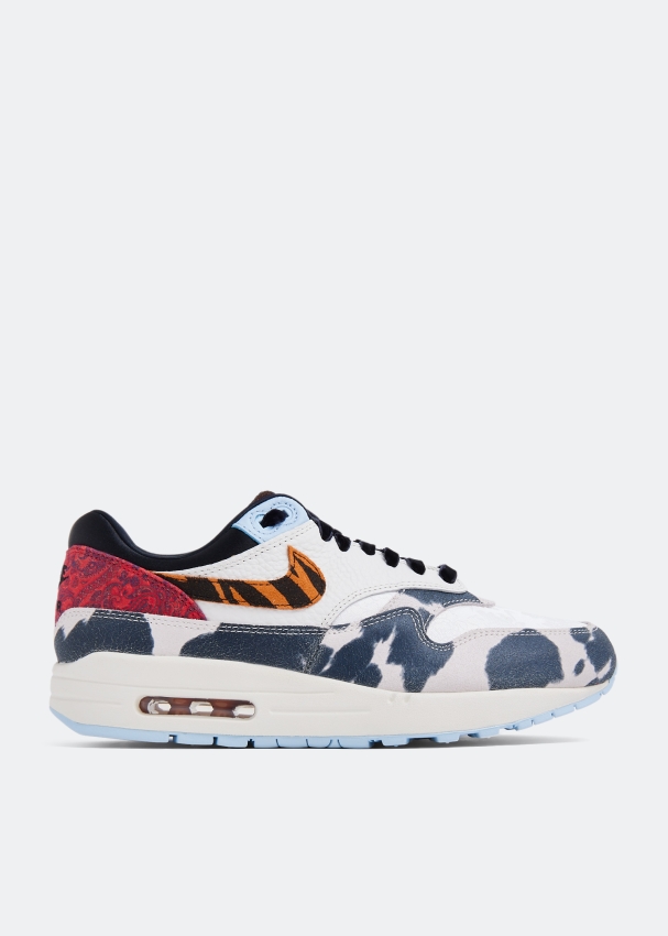 Nike updates the legendary Air Max 1 style in a wild, new colourway with the same lightweight cushioning of the original. Utilising leather, suede and satin, take note of the bold, animal-printed overlays, plush velvet laces, foam midsole with a visible Max Air unit in the heel for responsive cushioning, and a rubber outsole with a Waffle pattern that delivers durable traction.