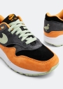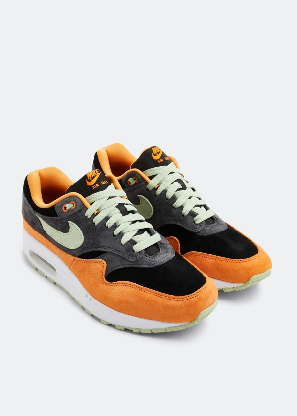 A fall-inspired colourway rules Nike's Air Max 1 PRM sneakers with grey, black, green and muted honeydew orange tones. The suede sneakers are signed off with the signature Air Max unit at the heel and rubber traction sole.