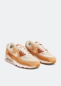 Another must-have rendition of the Air Max 90, Nike presents this classic sneaker in a 'Caramel' colourway. Crafted from different shades of leather and mesh, they feature leather Swooshes, and a gum outsole. Take note of the padded tongue with a canvas twill and 'Air Max' embroidery.
