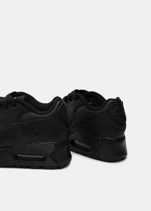 Downsized to fit your budding athlete, Nike's Air Max 90 LTR sneakers feature an all-black upper with no-sew overlays for a supportive, lightweight feel. Its visible Air-Sole unit helps absorb impact, while classic styling creates an authentic look.