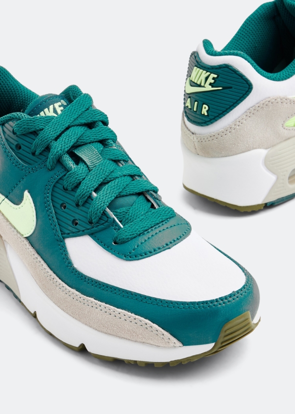 Add a spring to your little one's step with the Air Max 90 LTR sneakers. Made in a green, white and beige colourway, these chunky sneakers are equipped with an Air Max unit at the heel and a padded collar at the ankle.