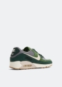 Another premium rendition of the Air Max 90, Nike presents this classic sneaker in a 'Pro Green' colourway with Pale Ivory and Forest Green accents. Crafted from suede and mesh, they feature leather Swooshes, and a gum outsole. Take note of the padded tongue with a canvas twill and 'Air Max' embroidery.