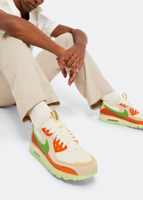 Another must-have rendition of the Air Max 90, Nike presents this classic sneaker in a 'Terrascape' colourway. They're designed with multi-coloured hue across the mudguard, suede overlay, and light nylon base with a grid pattern. Take note of the rubber outsole and a lace-up closure.
