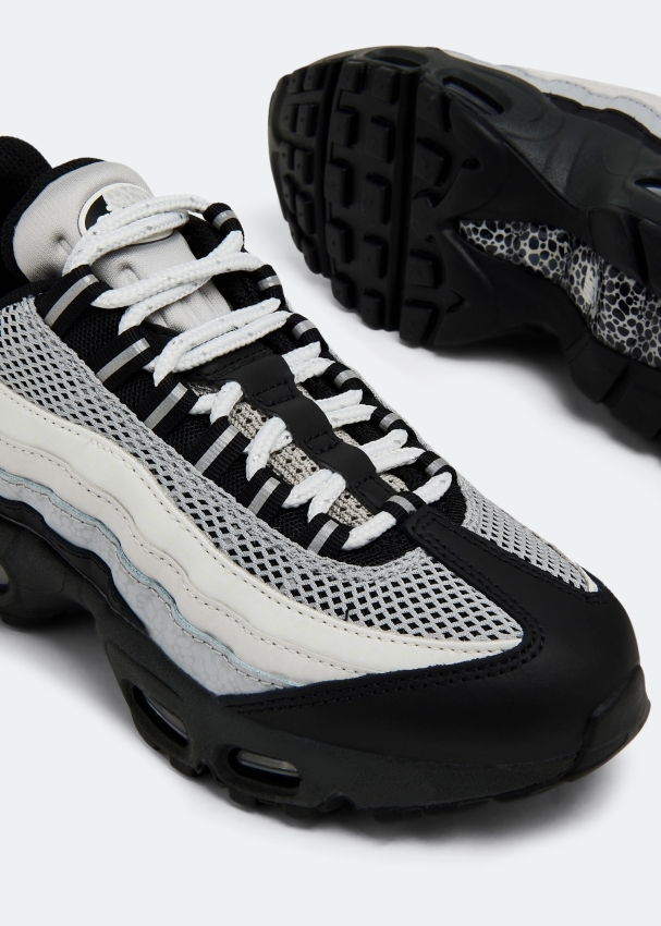 This season's version of the Nike Air Max 95 sneakers arrives in a 'Reflective Safari' colourway. The leather and mesh upper features 3M reflective detailing and a toggle lacing system atop a two-tone rubber sole.