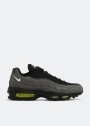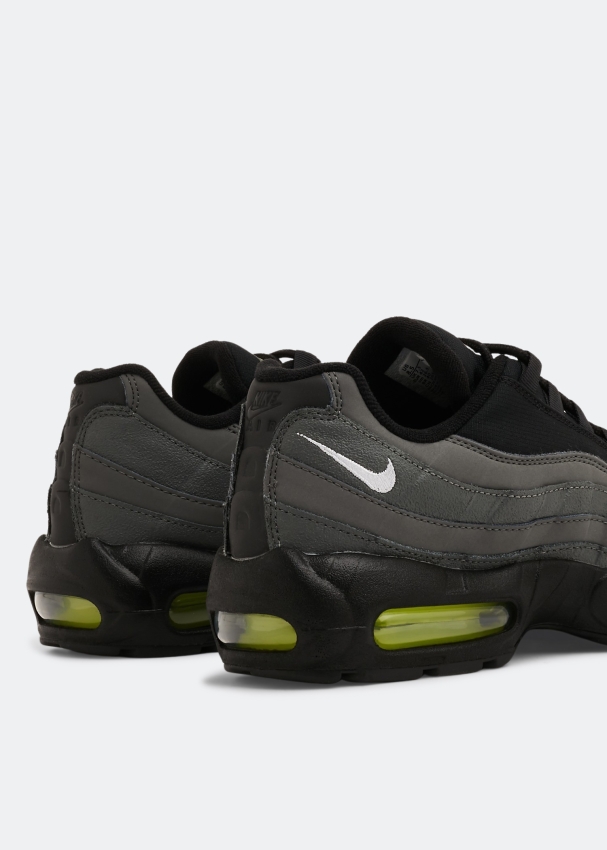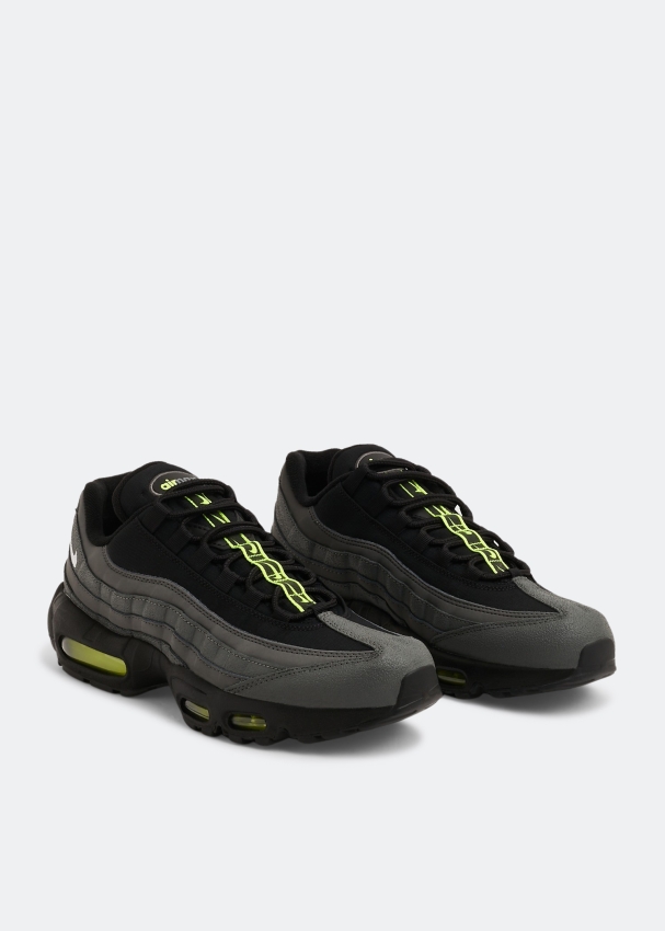 This season's version of the Nike Air Max 95 sneakers arrives in a simple, universal colourway that's perfect year-round. The suede and mesh upper come in a tonal black and grey with the neon shade highlighting the tongue, Air Max patch, and the tint of the Air Units below.