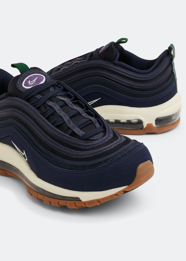 Part of the Air Max 97 25th anniversary, this legendary model designed by Cristian Tresser is presented in an Obsidian, Gorge Green, Midnight Navy, and Sail colourway. Made from a mix of woven mesh, nubuck and leather materials, they're finished with 3M reflective detailing atop a Sail midsole and Gum rubber outsole.