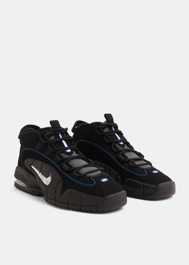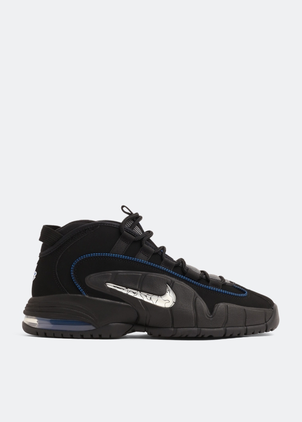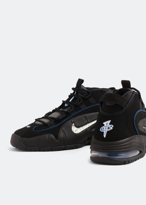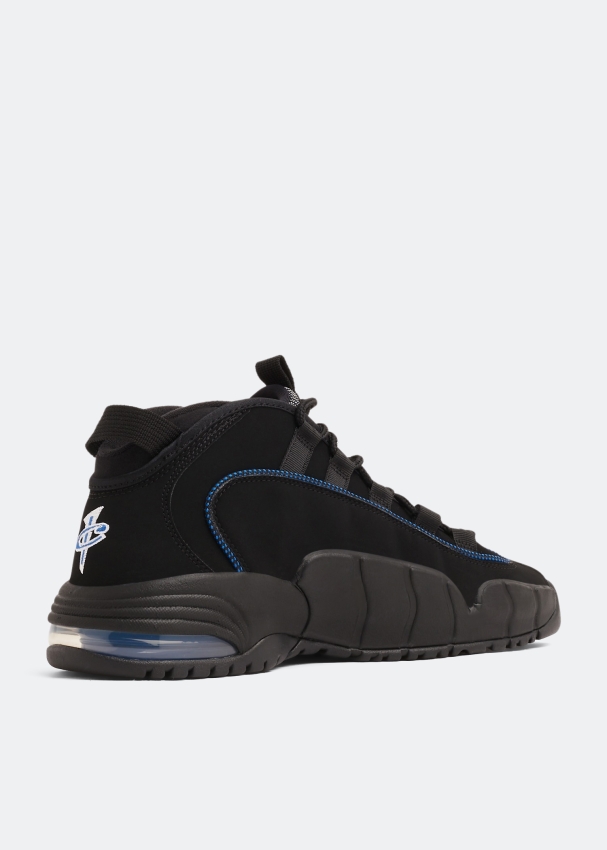 Nike's Air Max Penny 1 'All Star' sneakers pay tribute to the basketball icon Penny Hardaway. Defined by the jewelled Swoosh, the black nubuck leather upper is further enhanced with blue winged piping and a tonal outsole fitted with the iconic Air unit for unparalleled cushioning and performance-level comfort.