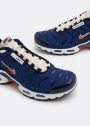 Taking after their performance roots, the Air Max Plus SE 'AMRC' sneakers by Nike come together with retro-styled branding and a vintage-inspired colourway. They feature a Deep Royal Blue base with a black cage, mudguard overlays highlighted with orange contrasting accents, an 'AMRC' lateral label atop a white midsole and a black rubber outsole.
