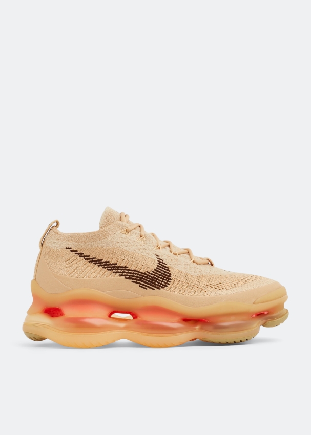 Presented in a golden-based knit, these Nike Air Max Scorpion 'Wheat' sneakers are detailed with Swooshes and branding in a contrasting brown shade. Other key features include a snug woven upper, pull-tab, and the thick, full-length Air Max sole unit for next-level cushioning.