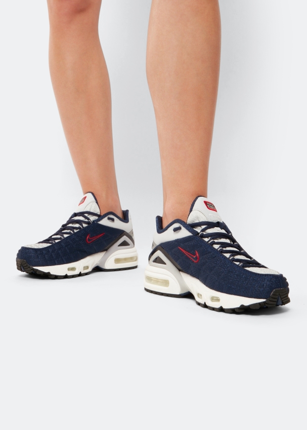 After two decades, Nike's Air Max Tailwind V SP sneakers are back. The iconic quilted mesh upper is paired with the Max Air cushioning in the forefoot and heel for a comfortable and unique look. Arriving with a new colourway of 'Midnight Navy' and 'University Red', this lace-up style features white accents throughout and a contrasting black rubber outsole.